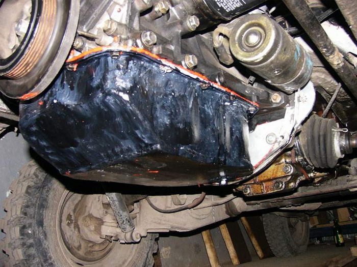 2. Поддон двигателя переварить (лучше это делать, когда машина будет на ходу). Чтобы сохранить объем масла, помимо подрезания поддона я еще нарастил его (см. фото).