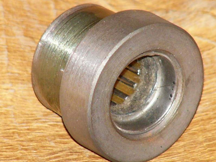 1. Установить подшипник для первичного вала коробки в углубление на торце коленвала двигателя со стороны сцепления (см. фото). Он сядет на фиксирующий герметик. Подшипник можно изготовить из штатного сороковочного подшипника, проточив шестигранник до размера отверстия маховика.