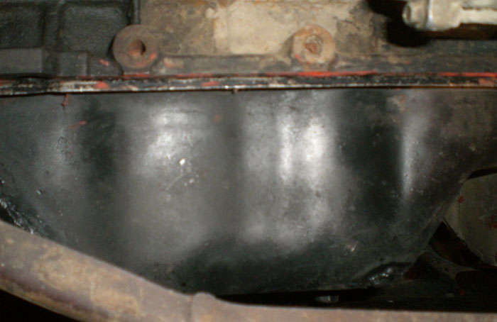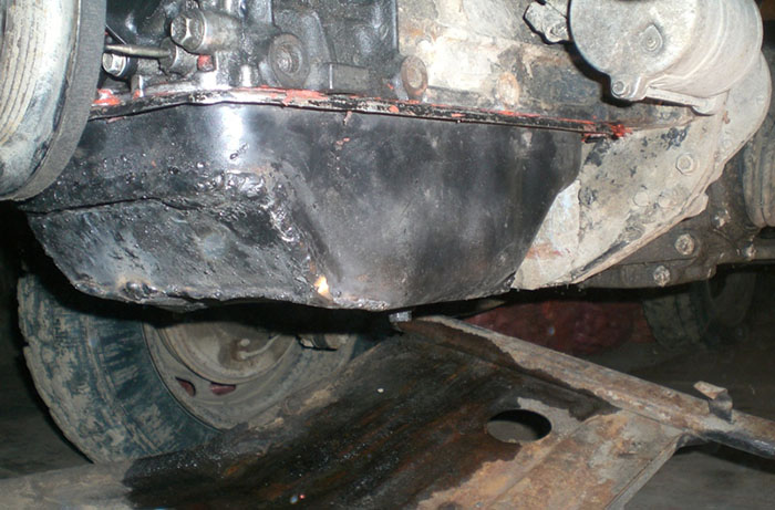 Небольшая эксплуатация выявила течь сальника на передней крышке в двигателе, возившись с его заменой, заодно скинул и поддон. Переварили его компромиссным способом:
