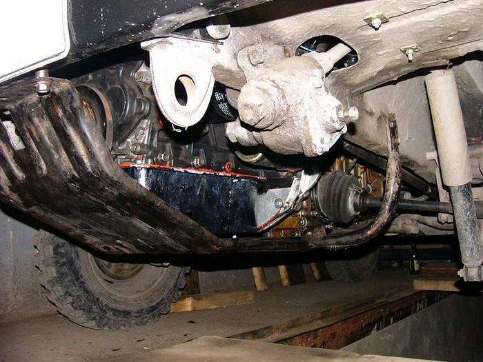 — доработка рулевой тяги— замена глушителя(УАЗовский ожиданий не оправдал)— доработка поддона двигателя и установка защиты.