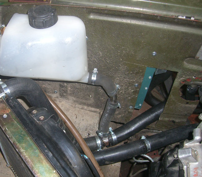 Радиатор установлен, патрубки подведены, в качестве соединителей использовалась труба от старого пылесоса(очень хорошо подходит по диаметру) один из соединителей выполнен в виде тройника под трубку на 20мм, для установки расширительного бачка от 08-й модели, на следующем снимке макетируется уже он:
