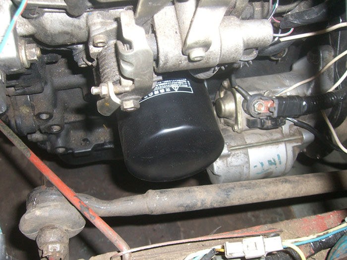Проблему представляет рулевая тяга, идущая от редуктора. Она упирается не только в масляный фильтр, но и в стартер. Решение мной было отложено, ввиду отсутствия расходного материала-утильных рулевых тяг, тяга была развернута на 180 градусов и встала на место: