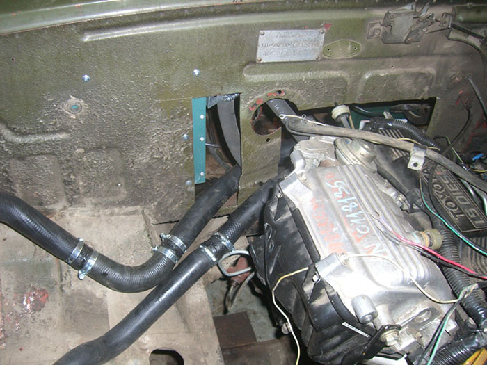 Это сделано потому, что у 1N патрубки радиатора, радиатора отопителя и обратки системы питания расположены таким образом, что упираются как раз в эту панель в ЛуАЗе, на «родных» автомобилях двигатель установлен поперек.
