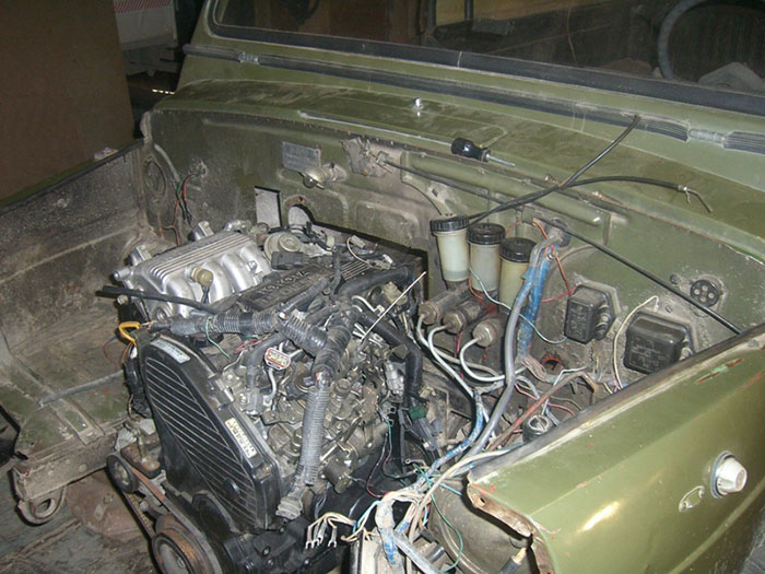 Но вопрос трансплантации бензинового «сердца» для ЛуАЗа ох как непрост. Вроде и капот у него не самый короткий, но получается так, что двигатель висит впереди передней оси и всей трансмиссии (дает о себе знать родство с ), и имеет значение каждый сантиметр его длины. Ведь родной мотор «волынянки», МеМЗ-966968 – относительно короткий V-образный, к тому же лишен радиатора водяного охлаждения, а все современные «заменители» – рядные «четверки», которые охлаждаются жидкостью. Лучшее решение тут – позаимствовать «короткий» мотор от компактной переднеприводной иномарки. Так, едва ли не классическим решением для замены мотора стал 1,6-литровый турбодизель от VW Golf II, установка которого не требует переделки кузова. Но кажется, чаще встречаются более хлопотные – хотя в итоге и более дешевые варианты: моторы от задне- и переднеприводных ВАЗов и Таврий.