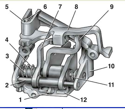 оси 3 установлены трехплечий рычаг выбора передач, две блокировочные скобы 7 и 12. Другая