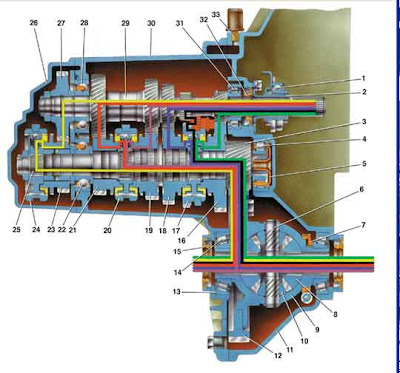 масла внутрь вторичного вала и далее под ведомые шестерни.